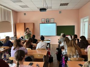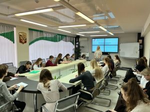 В течение шести учебных дней с обучающимися были организованы встречи с учителями МБОУ СШ №21 имени Н. И. Рыленкова г. Смоленска, МБОУ СШ №12 г. Смоленска, МБОУ СШ №33 г. Смоленска, МБОУ СШ №25 г. Смоленска, с методистами ГАУ ДПО СОИРО. В процессе общения со студентами учителя школ поделились своим опытом методической и научно-исследовательской деятельности, профессиональными наработками. Учителя охотно демонстрировали формы, методы и приемы работы, которые их будущие коллеги могут использовать в своей профессии.