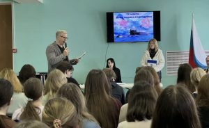 У студентов выдался по-настоящему необычный и познавательный день. Прошла встреча с Сергеем Владимировичем Архипенковым, капитаном 2 ранга, подводником, заместителем председателя «Морского собрания» города Смоленска. А также с Анастасией Валерьевной Басовой, методистом музея имени адмирала П.С. Нахимова. Рассказ Сергея Владимировича с первых же минут захватил внимание аудитории: истории о жизни под водой, о мужестве и выдержке моряков, о тайнах подводного флота никого не оставили равнодушными.
