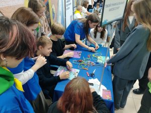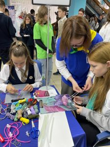 Участниками масштабного мероприятия стали более 700 школьников. От нашего колледжа обучающиеся группы 3.ДО.11 Ольга Веселова и Анастасия Бычковская вместе с преподавателями Натальей Шалимовой и Натальей Андреевой провели профессиональную пробу «Головоломки: простые и сложные», в рамках которой школьники решали увлекательные логические задания, собирали танграмы. Также обучающиеся группы 3.Д.9.2 София Легостаева, Екатерина Николенко и Кристина Алейникова вместе со своим преподавателем Ириной Ермаченковой провели профессиональную пробу «Твой уникальный аксессуар», где участники мероприятия могли создать украшение. Такие аксессуары помогают показать свою индивидуальность, становятся отличным дополнением к любому образу. Локации с нашими профессиональными пробами посетила директор колледжа Нина Полторацкая, отметив слаженность и увлечённость работы на площадке.