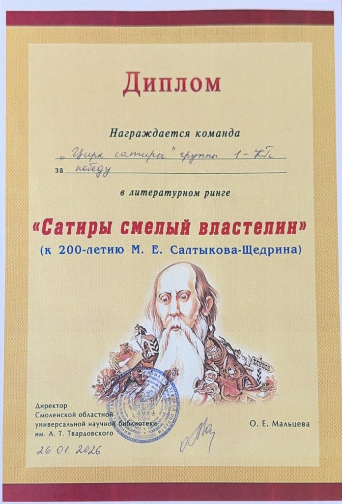 В Смоленском педагогическом колледже состоялась увлекательная интеллектуальная игра «Сатиры смелый властелин», посвящённая 200-летию Михаила Евграфовича Салтыкова-Щедрина. Игра собрала пять талантливых команд, готовых показать своё знание творчества знаменитого сатирика.