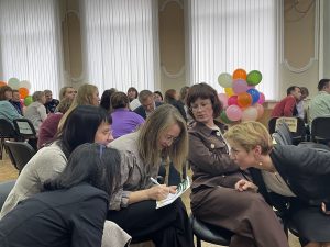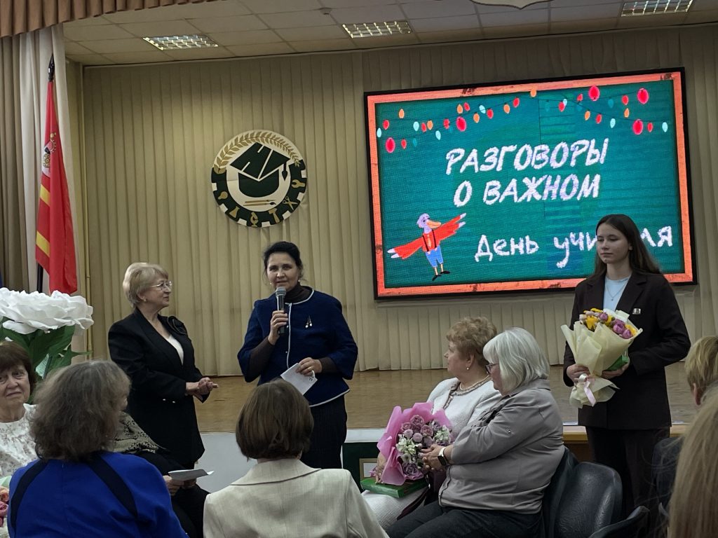 В актовом зале прошёл увлекательный квиз для преподавателей «Разговоры о важном», подготовленный Валерией Коротковой и Галиной Соловьёвой. В мероприятии приняли участие педагогические команды, которые соревновались в шести разнообразных турах. За каждый правильный ответ, помимо баллов, участники получали сладкие призы – конфеты.