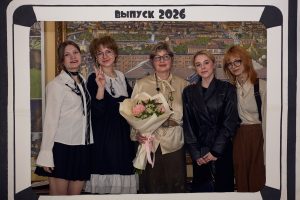 В завершение праздничного вечера преподаватели получили цветы и необычный сувенир – кассету с логотипом Союзмультфильма, где вместо мультфильма на плёнке оказались записаны тёплые поздравления от выпускников 2026.