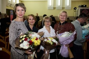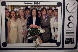 В завершение праздничного вечера преподаватели получили цветы и необычный сувенир – кассету с логотипом Союзмультфильма, где вместо мультфильма на плёнке оказались записаны тёплые поздравления от выпускников 2026.