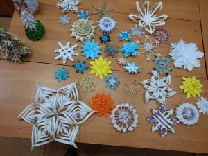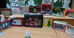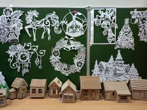 Перед обучающимися стояла задача научиться как можно красивее   и оригинальнее декорировать внутреннее пространство, изготавливать сувенирную продукцию, отражать фирменный стиль организации в праздничном варианте. Ими были выполнены новогодние плакаты, сказочные домики, рамки для картин, освоены правила конструирования витрин и упаковок, изготовление прорезных картин и снежинок. По итогам практики была организована выставка-просмотр для групп специальности ДПИ, ДО и ПНК.